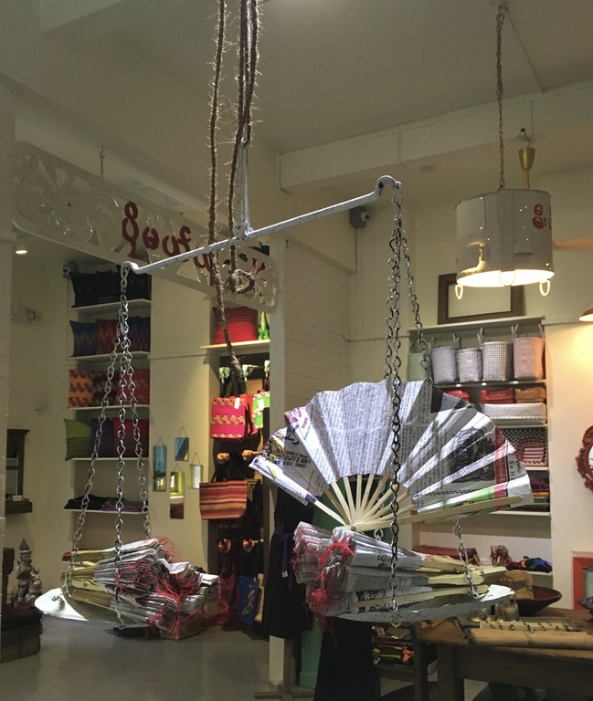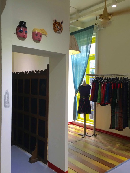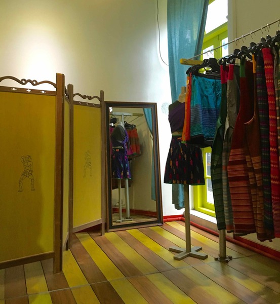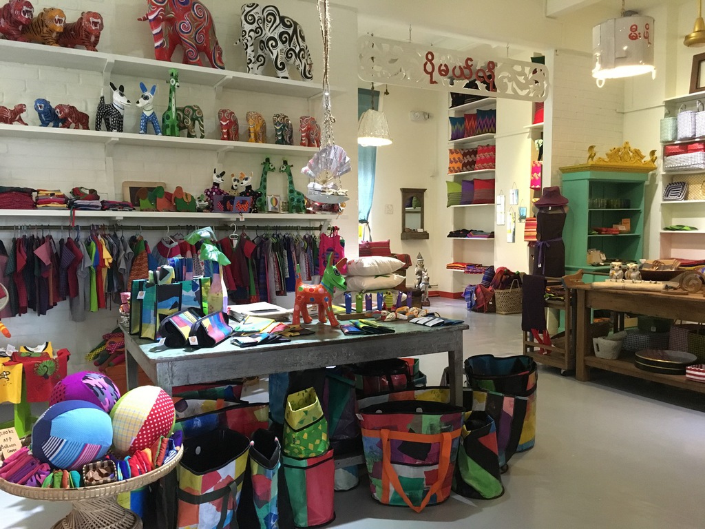 Country. The floor of the area where clothing is displayed used to be the trunk of an old smoky diesel truck that has travelled many of the roads of Myanmar. The clothes’ hanger is a transformed